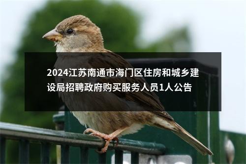 原标题:南通市海门区住房和城乡建设局公开招聘政府购买服务人员公告 2024-04-19