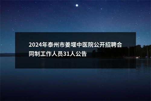 原标题:泰州市姜堰中医院2024年公开招聘合同制工作人员公告